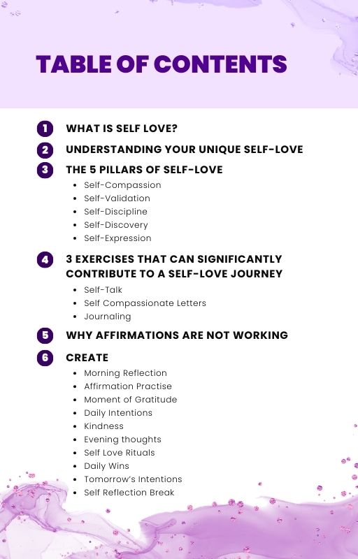 Exploring the pillars of self-love in this workbook was eye-opening. The exercises offered tangible ways to cultivate self-compassion and acceptance. – Aisha